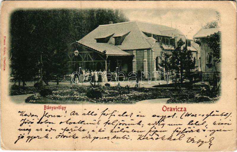 1899 (Vorläufer) Oravicabánya, Oravica, Oravicza, Oravita; Bányavölgy,... https://www.darabanth.com/de/433-Fernauktion/433.0/Ansichtskarten/Siebenburgen~1500007/1899-Vorlaufer-Oravicabanya-Oravica-Oravicza-Oravita-Banyavolgy-vendeglo-Franz-Grau-ki~II2792846