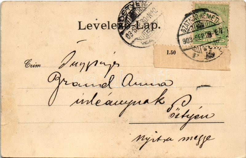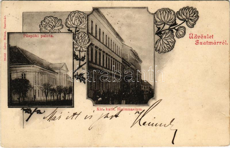 1903 Szatmárnémeti, Szatmár, Satu Mare; Püspöki palota, Kir. katolikus főgimnázium. Lövy Miksa kiadása / bishop's palace, Catholic grammar school. Art Nouveau, floral (r)