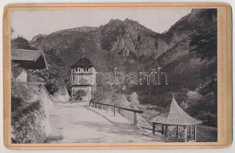 Herkulesfürdő, Baile Herculane; Ártézi kút és József forrás. Emil Jäger / Artesischer Brunnen und Josefs-Quelle - kemény hátú fotó / cardboard photo (16,4 x 10,6 cm)