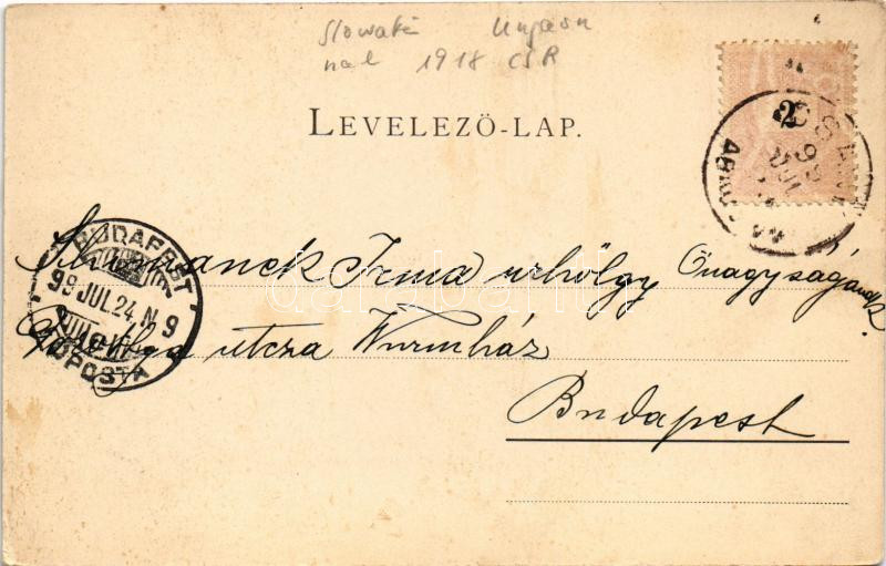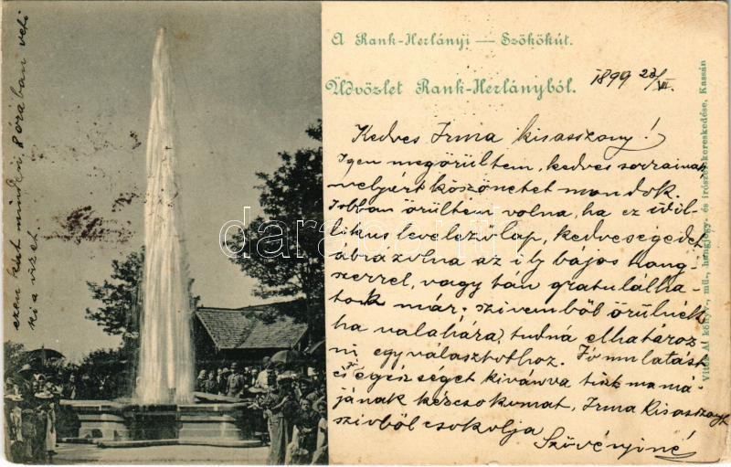 Beschreibung: 1899 (Vorläufer) Ránkfüred, Rank-Herlány, Ránkherlány, Rank Herlein, Herlany (Kassa, Kosice, Kaschau); Szökőkút, magyar gejzír. Vitéz A. kiadása / Herliansky gejzír / geyser, fountain (EK)