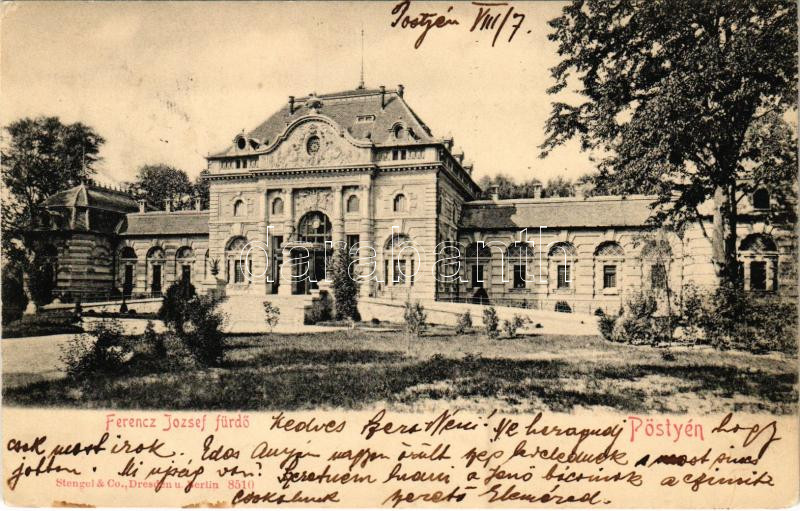 1904 Pöstyén, Pistyan, Piestany; Ferenc József fürdő / Franz Josefs Ba... https://www.darabanth.com/de/433-Fernauktion/433.0/Ansichtskarten/Slowakei~1500008/1904-Postyen-Pistyan-Piestany-Ferenc-Jozsef-furdo-Franz-Josefs-Bad-spa-bathhouse-EK~II2792323