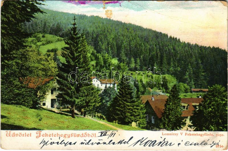 Beschreibung: 1905 Feketehegy-fürdő, Feketehegy, Schwartzenberg, Cernohorské kúpele (Merény, Vondrisel, Nálepkovo); látkép. Lomniczy V. kiadása / general view, spa (szakadás / tear)
