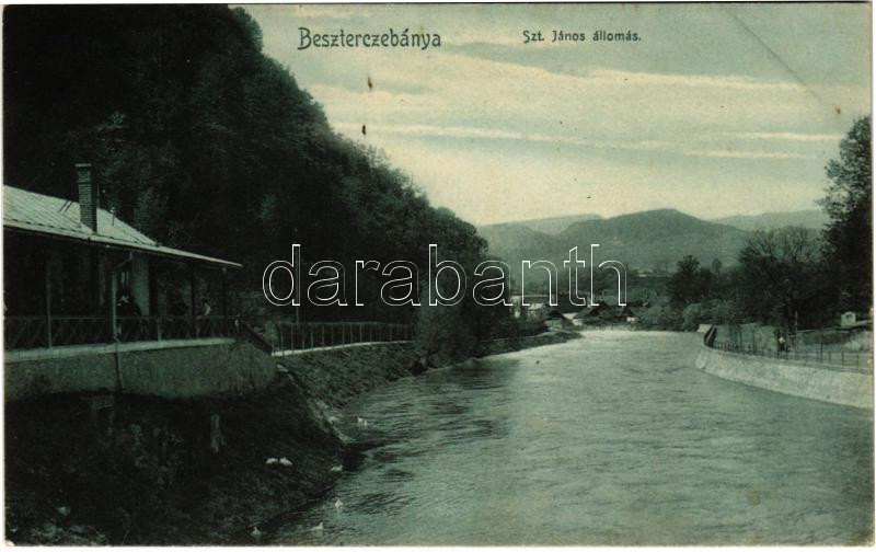 1906 Besztercebánya, Banská Bystrica; Garam, Szent János (Szentjános) vasútállomás. Sonnenfeld Mór kiadása / Bahnhof / Hron riverside, railway station Banská Bystrica mesto