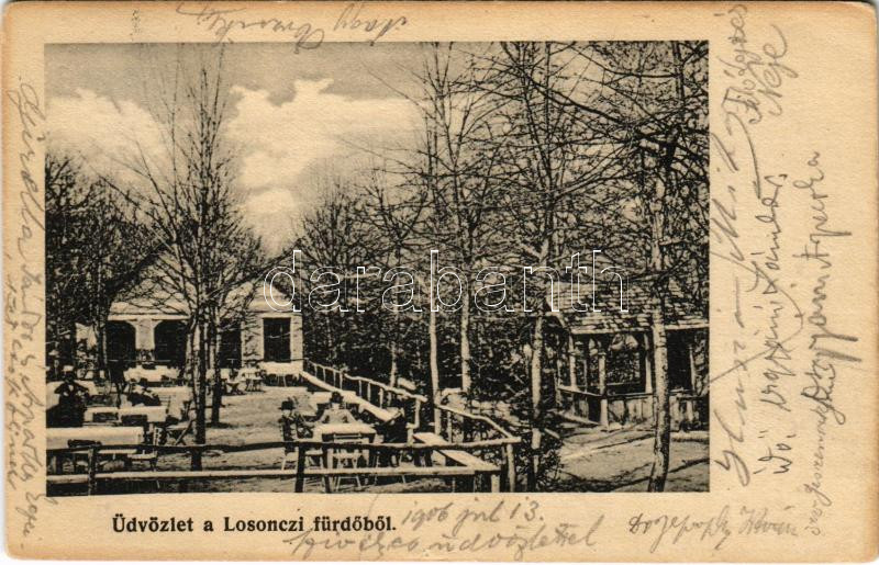 1906 Losonc, Lucenec; Losonczi-fürdő, vendéglő / spa, bath, restaurant... https://www.darabanth.com/de/433-Fernauktion/433.0/Ansichtskarten/Slowakei~1500008/1906-Losonc-Lucenec-Losonczi-furdo-vendeglo-spa-bath-restaurant-EK~II2783005