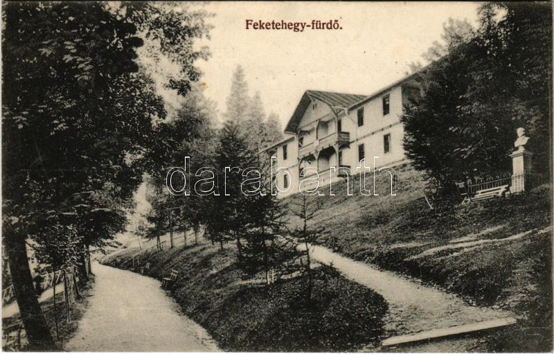 Beschreibung: 1912 Feketehegy-fürdő, Feketehegy, Schwartzenberg, Cernohorské kúpele (Merény, Vondrisel, Nálepkovo); Tompa ház és szobor / villa, statue, spa (lyuk / pinhole)