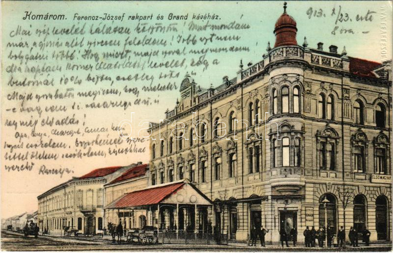 1913 Komárom, Komárno; Ferenc József rakpart és Grand kávéház / street... https://www.darabanth.com/de/433-Fernauktion/433.0/Ansichtskarten/Slowakei~1500008/1913-Komarom-Komarno-Ferenc-Jozsef-rakpart-es-Grand-kavehaz-street-view-cafe~II2797981
