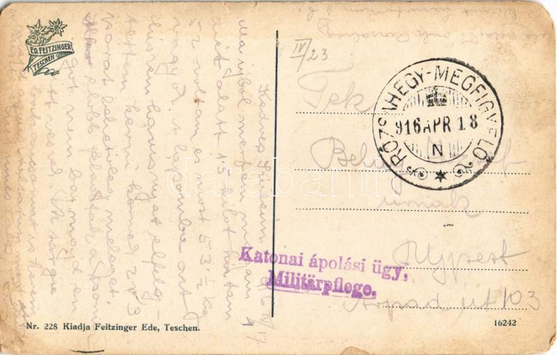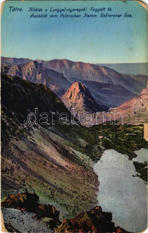 1916 Tátra, Vysoké Tatry; Kilátás a Lengyel-nyeregről, Fagyott tó. Feitzinger Ede Nr. 228. / Ausblick vom Polnischen Kamm, Gefrorener See + "RÓZSAHEGY-MEGFIGYELŐ" (EM)