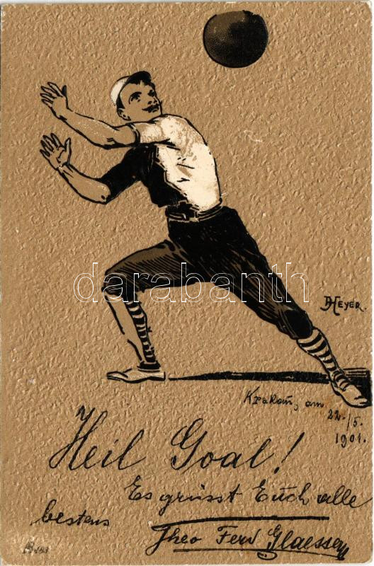 1901 Labdarúgó, foci. Dombornyomott / Football player. Emb. litho s: H... https://www.darabanth.com/de/433-Fernauktion/433.0/Ansichtskarten/Sport~1500079/1901-Labdarugo-foci-Dombornyomott-Football-player-Emb-litho-s-Heyer~II2799686