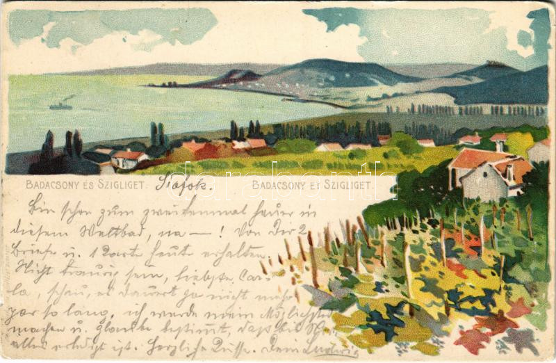 1905 Badacsony, Szigliget, Balaton. Bruchsteiner és fia litho (EK) https://www.darabanth.com/de/433-Fernauktion/433.0/Ansichtskarten/Ungarn~1500006/1905-Badacsony-Szigliget-Balaton-Bruchsteiner-es-fia-litho-EK~II2798154