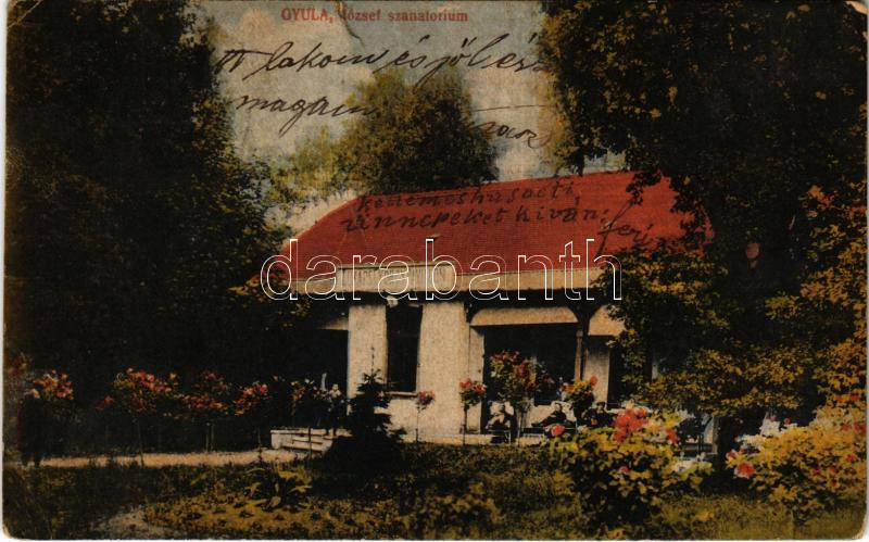 1919 Gyula, József szanatórium, Lukács György pavilon. Dobay János kia... https://www.darabanth.com/de/433-Fernauktion/433.0/Ansichtskarten/Ungarn~1500006/1919-Gyula-Jozsef-szanatorium-Lukacs-Gyorgy-pavilon-Dobay-Janos-kiadasa-szakadas-tear~II2789561
