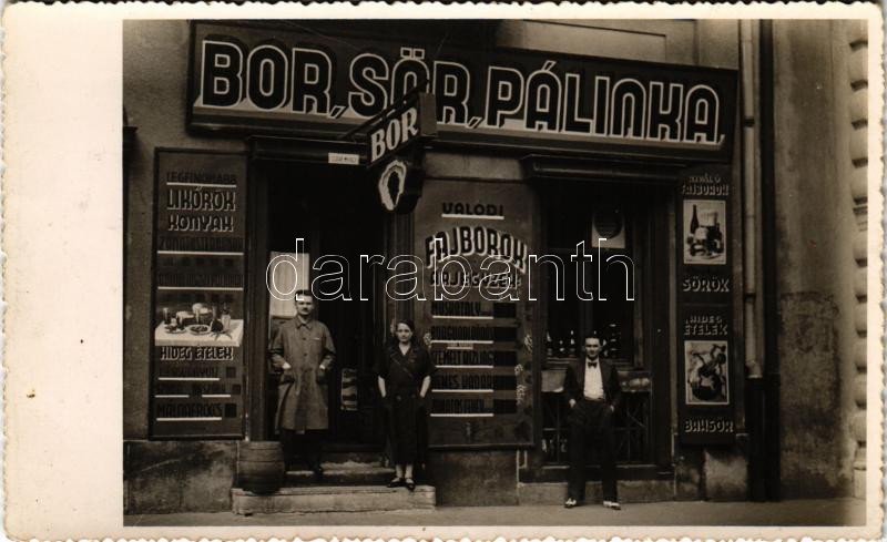 Beschreibung: 1937 Budapest, Dobár Mihály bor, sör és pálinka kereskedő üzlete. photo