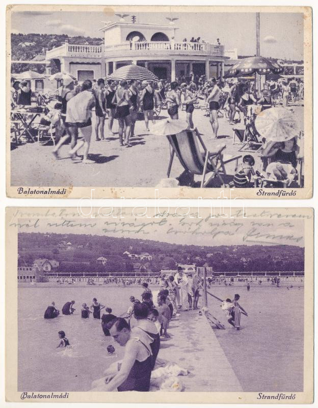 Balatonalmádi - 2 db RÉGI város képeslap: strand, fürdőzők / 2 pre-194... https://www.darabanth.com/de/433-Fernauktion/433.0/Ansichtskarten/Ungarn~1500006/Balatonalmadi-2-db-REGI-varos-kepeslap-strand-furdozok-2-pre-1945-town-view-postcards~II2763989