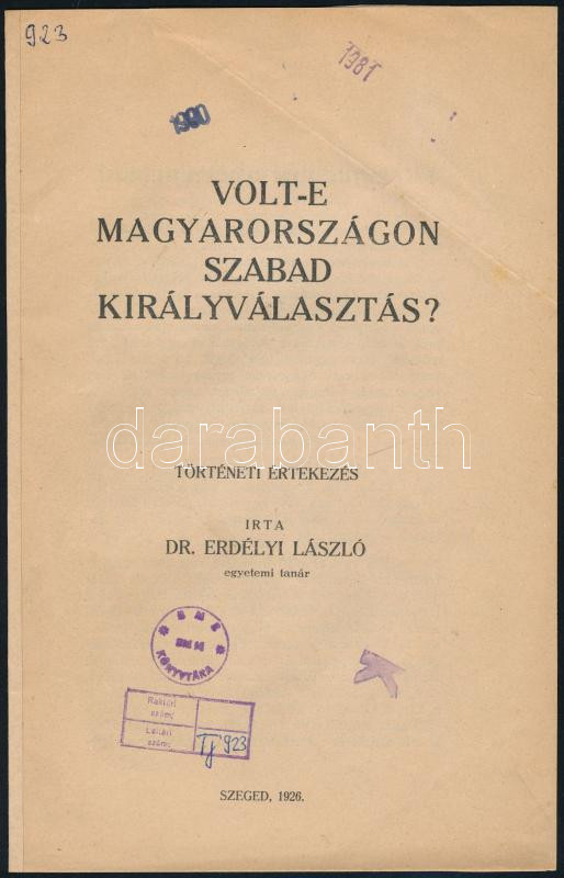 Erdélyi László: Volt-e Magyarországon szabad királyválasztás. Történet... https://www.darabanth.com/de/433-Fernauktion/433.0/Bucher/Bucher-Geschichte~1000010/Erdelyi-Laszlo-Volt-e-Magyarorszagon-szabad-kiralyvalasztas-Torteneti-ertekezes-Szeged~II2799810