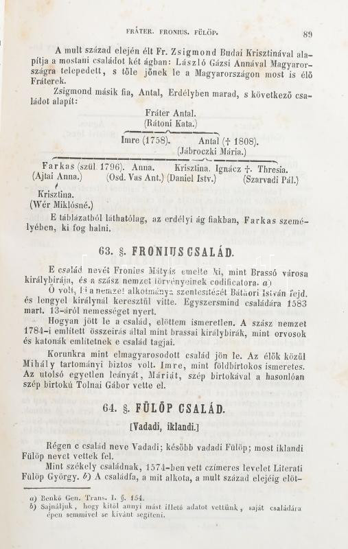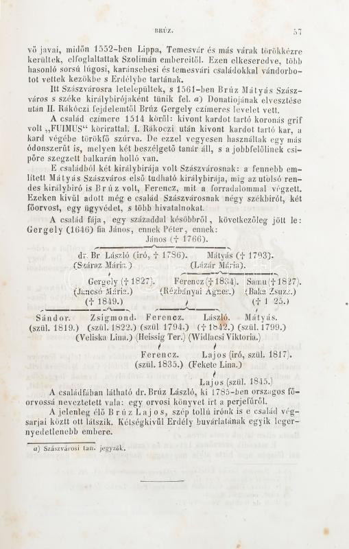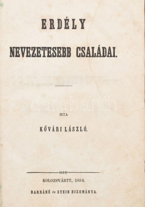 Kővári László: Erdély nevezetesebb családai. Kolozsvár, 1854., Barráné és Stein. 2 sztl. lev., 279 p. Korabeli, koszos egészvászon kötésben. Első néhány lap foltos. Benne kézzel rajzolt családfák
