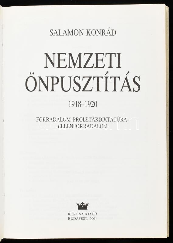 Salamon Konrád: Nemzeti önpusztítás. 1918-1920. Forradalom-proletárdik... https://www.darabanth.com/de/433-Fernauktion/433.0/Bucher/Bucher-Geschichte~1000010/Salamon-Konrad-Nemzeti-onpusztitas-1918-1920-Forradalom-proletardiktatura-ellenforradalom-~II2796508