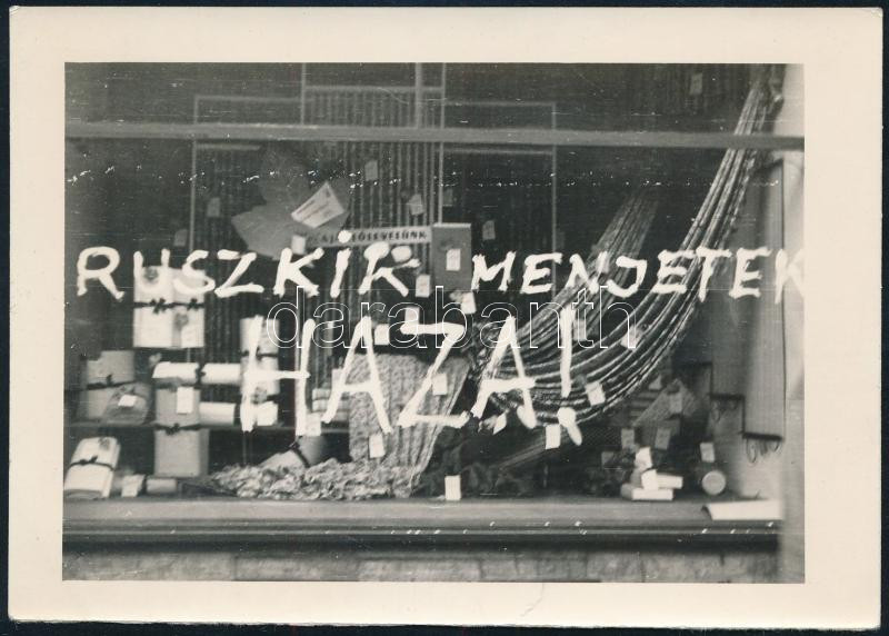 1956 Ruszkik menjetek haza! felirat egy ruhabolt kirakatán, eredeti fo... https://www.darabanth.com/de/433-Fernauktion/433.0/Fotografie/Foto~500022/1956-Ruszkik-menjetek-haza-felirat-egy-ruhabolt-kirakatan-eredeti-foto-9-5C39712-5-cm~II2798011