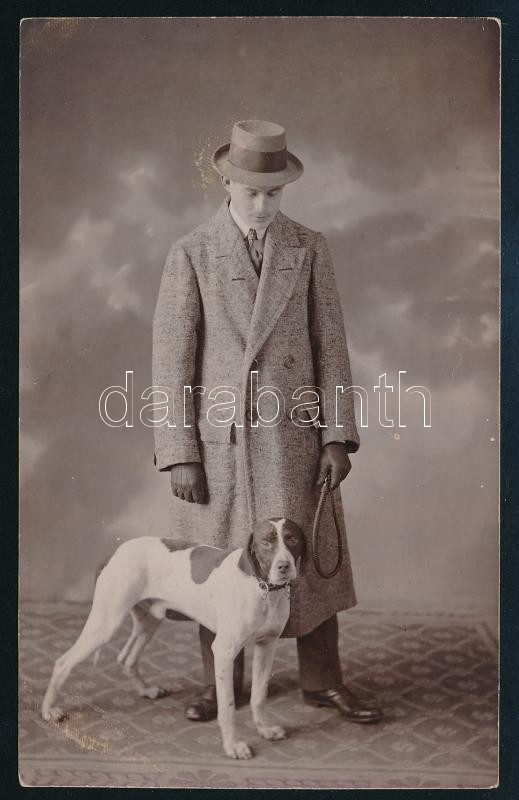 cca 1920 Elegáns úr kutyával, fotó, 14×8,5 cm https://www.darabanth.com/de/433-Fernauktion/433.0/Fotografie/Foto~500022/cca-1920-Elegans-ur-kutyaval-foto-14C3978-5-cm~II2793121