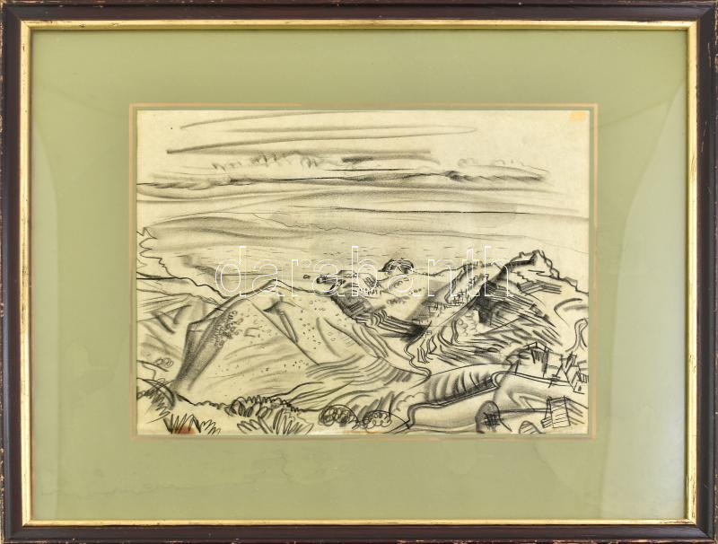 Beschreibung: Jelzés nélkül: Taormina, Szicília. Szén, papír, üvegezett fakeretben, 32,5×40 cm