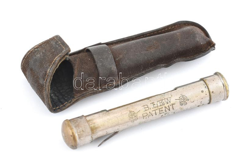 Beschreibung: cca 1880 Benjamin Lew zsebdugóhúzó, jelzett, bőr tokban, kopásnyomokkal, h: 8,5 cm