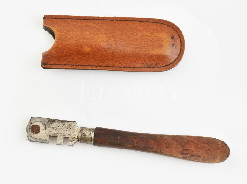 Beschreibung: Üvegvágó, bőr tokban, jelzett, h: 13 cm