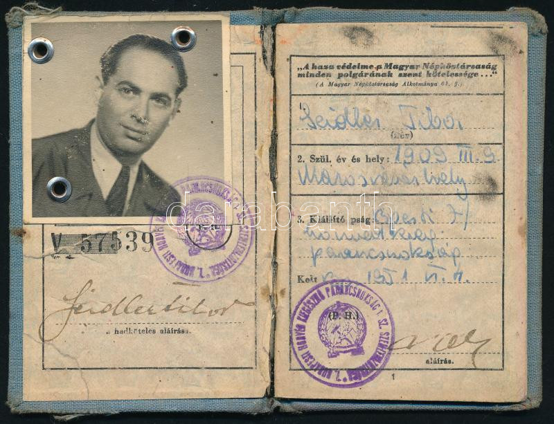 1951 Volt munkaszolgálatos fényképes katonai igazolványa https://www.darabanth.com/de/433-Fernauktion/433.0/Kunst-Dokumente-andere-Sammelgebiete/Judaica~500026/1951-Volt-munkaszolgalatos-fenykepes-katonai-igazolvanya~II2795861