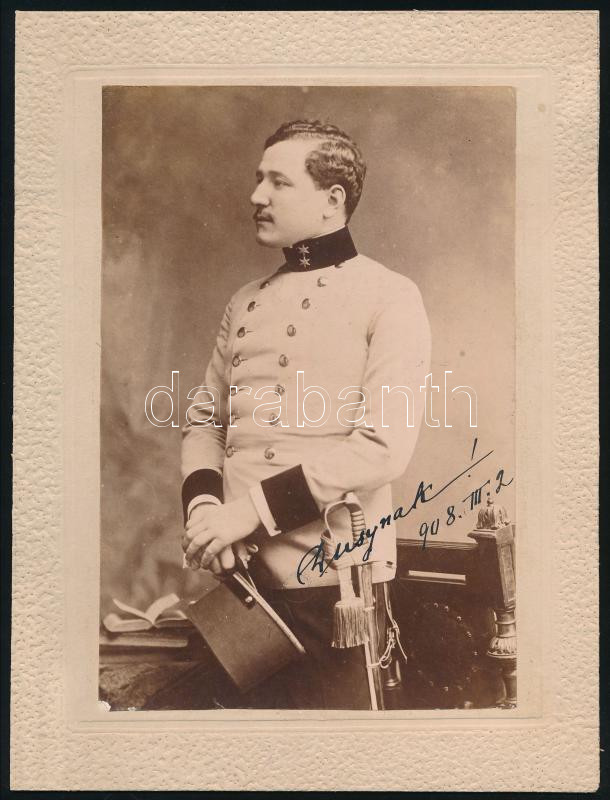 1908 Cs. és kir katonatiszt fotója, saját kézzel írt dátumozott ajánlá... https://www.darabanth.com/de/433-Fernauktion/433.0/Kunst-Dokumente-andere-Sammelgebiete/Militaria~500029/1908-Cs-es-kir-katonatiszt-fotoja-sajat-kezzel-irt-datumozott-ajanlasaval-17x11-cm~II2764051