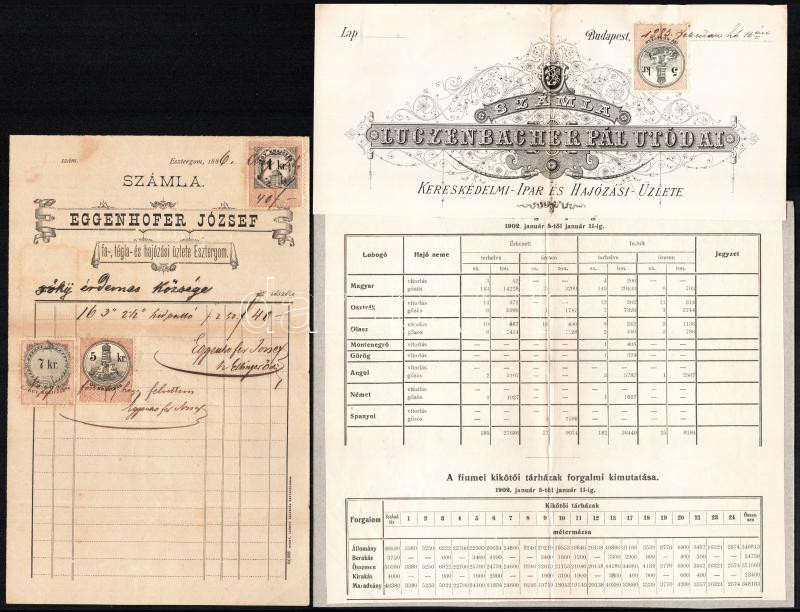 Beschreibung: ca 1880 hajózással kapcsolatos 4 db számla, levél, reklám