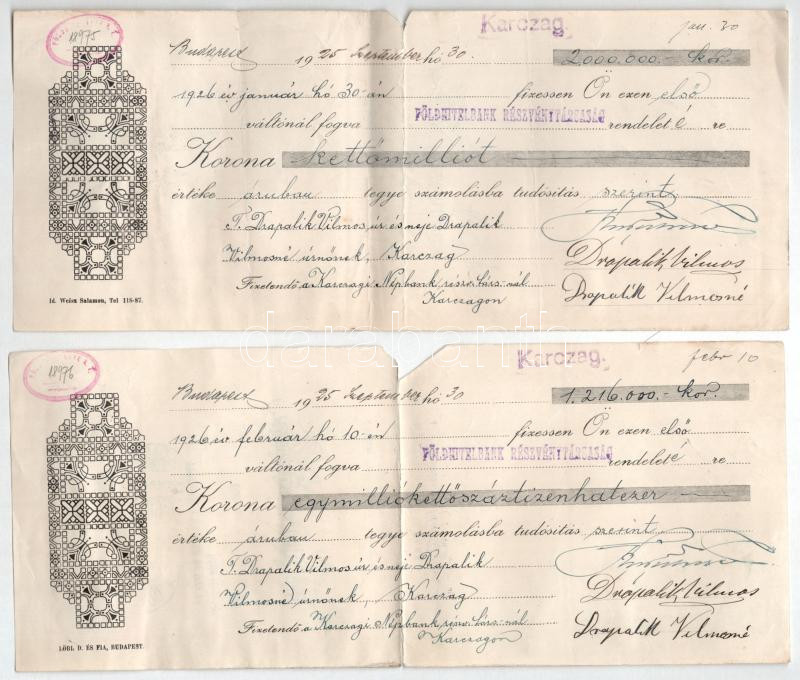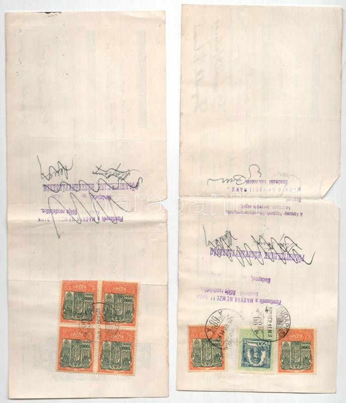 Budapest 1925-1938. 6xklf váltó bélyegzésekkel, okmánybélyegekkel T:II... https://www.darabanth.com/de/433-Fernauktion/433.0/Numismatik/Aktien-und-Tickets~2000017/Budapest-1925-1938-6xklf-valto-belyegzesekkel-okmanybelyegekkel-TIII-szakadas~II2793413