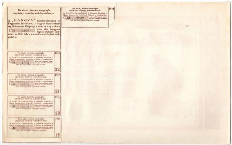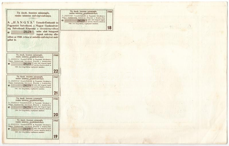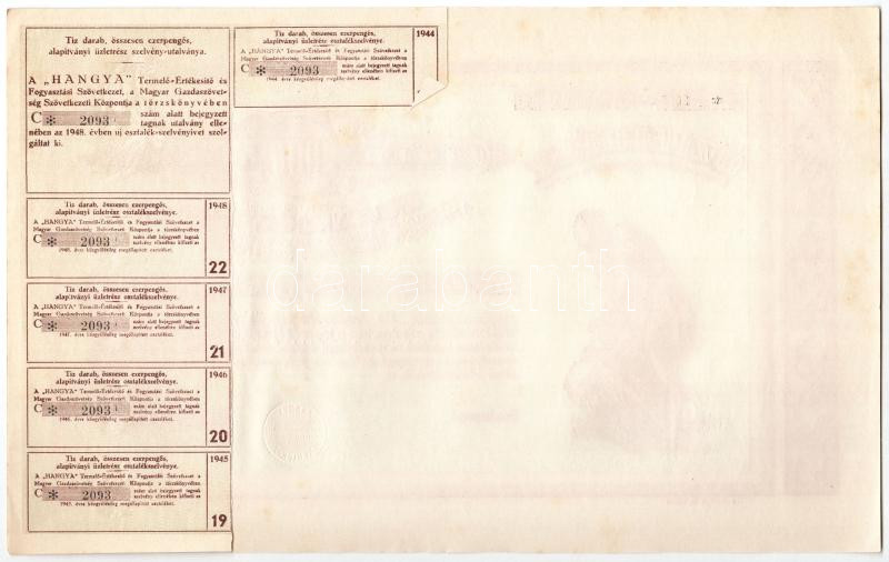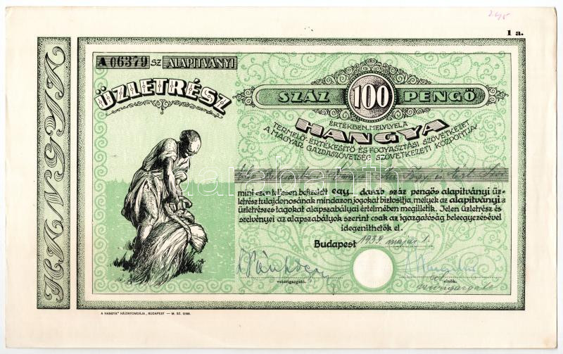 Budapest 1939-1943. "Hangya Termelő-Értékesítő és Fogyasztási Szö... https://www.darabanth.com/de/433-Fernauktion/433.0/Numismatik/Aktien-und-Tickets~2000017/Budapest-1939-1943-Hangya-Termelo-Ertekesito-es-Fogyasztasi-Szovetkezet-uzletresze-100P~II2793380