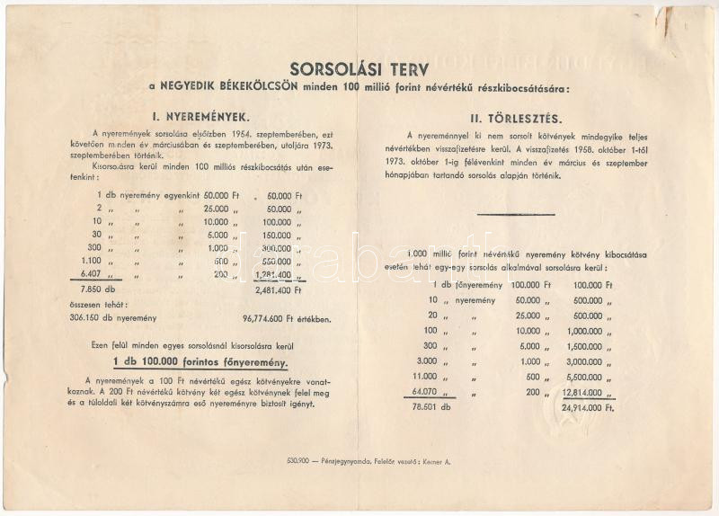 Budapest 1953. "Negyedik Békekölcsön" nyereménykölcsöne 200F... https://www.darabanth.com/de/433-Fernauktion/433.0/Numismatik/Aktien-und-Tickets~2000017/Budapest-1953-Negyedik-Bekekolcson-nyeremenykolcsone-200Ft-rol-lyukasztasokkal-ervenyt~II2797295