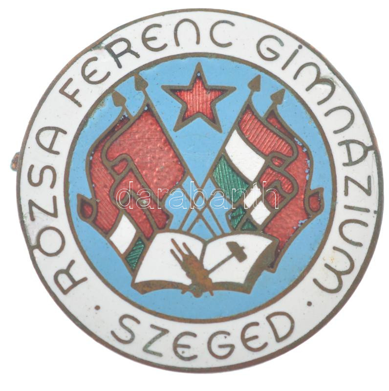 ~1950-1960. "Rózsa Ferenc Gimnázium - Szeged" zománcozott iskolajelvény (35mm) T:2 zománchiba