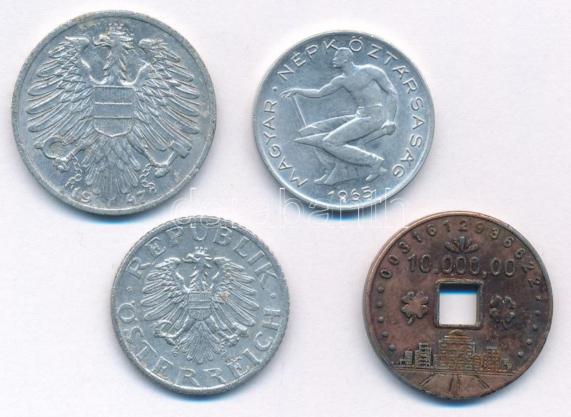 Ausztria 1947. 1Sch Al + 1952. 50g Al + Magyarország 1965. 50f Al + DN "10.000.000" zseton T:2,2-