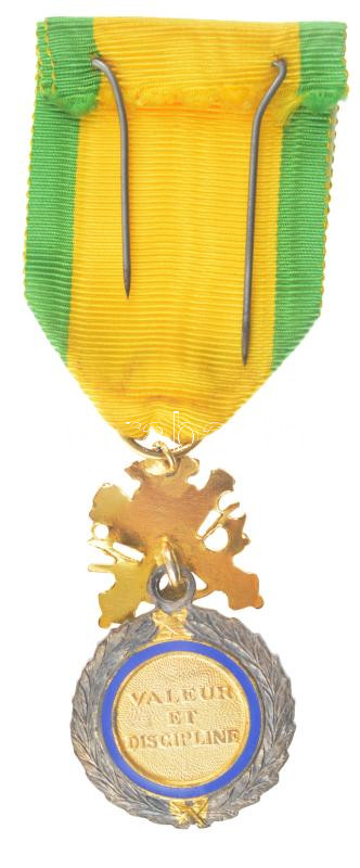 Franciaország 1870. "Érték és fegyelem" aranyozott, zománcozott kitüntetés mellszalagon T:1