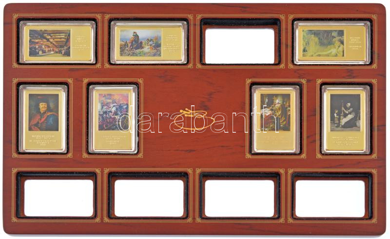 2014-2017. "A magyar festészet remekművei" aranyozott, multicolor Cu emlékérmek (7xklf) eredeti, fa éremtartó konzolban, 5db tanúsítvánnyal (érem:60x35mm/db, keret:230x340mm) T:PP