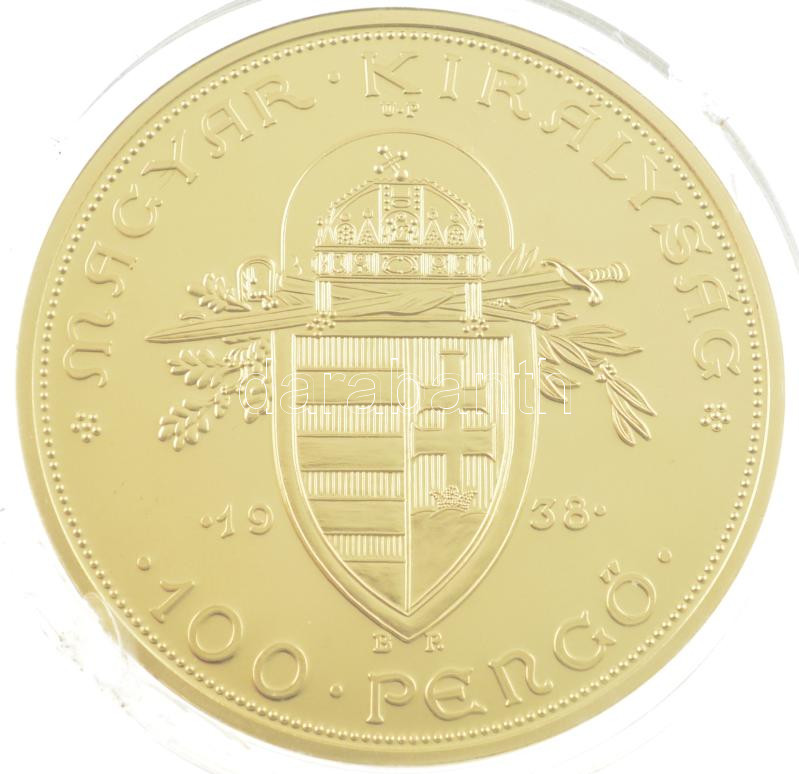 DN "Magyar Aranyóriások - 1938. 100 Pengő" aranyozott Cu utá... https://www.darabanth.com/de/433-Fernauktion/433.0/Numismatik/Moderne-Beischlage-Fantasiemunzen~2000010/DN-Magyar-Aranyoriasok-1938-100-Pengo-aranyozott-Cu-utanveret-TPP~II2791093