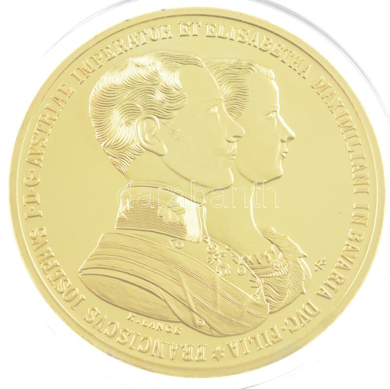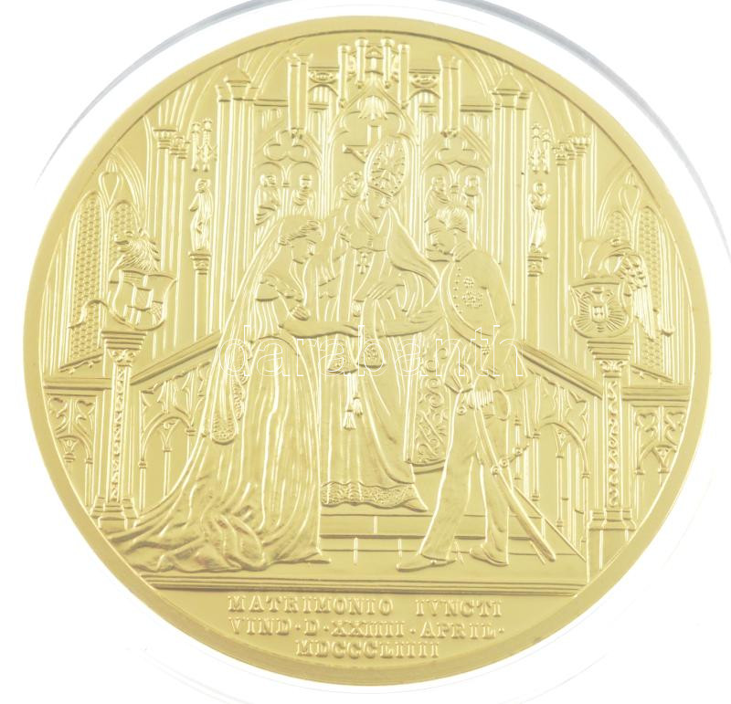 Beschreibung: DN "Magyar Aranyóriások - Ferenc József és Erzsébet házassági érme 1854" aranyozott Cu utánveret (46mm) T:PP