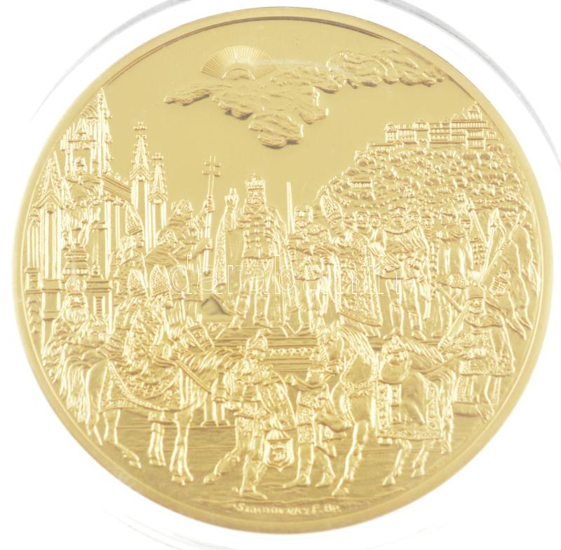 DN "Magyar Aranyóriások - Ferenc József koronázási emlékérem 1892... https://www.darabanth.com/de/433-Fernauktion/433.0/Numismatik/Moderne-Beischlage-Fantasiemunzen~2000010/DN-Magyar-Aranyoriasok-Ferenc-Jozsef-koronazasi-emlekerem-1892-aranyozott-Cu-utanveret-T~II2791112