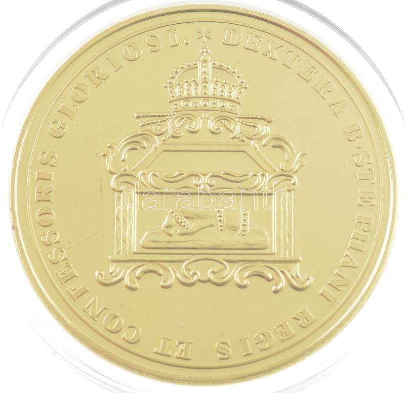Beschreibung: DN "Magyar Aranyóriások - Mária Terézia, a Szent Jobb hazahozatala emlékérem 1771" aranyozott Cu utánveret (46mm) T:PP
