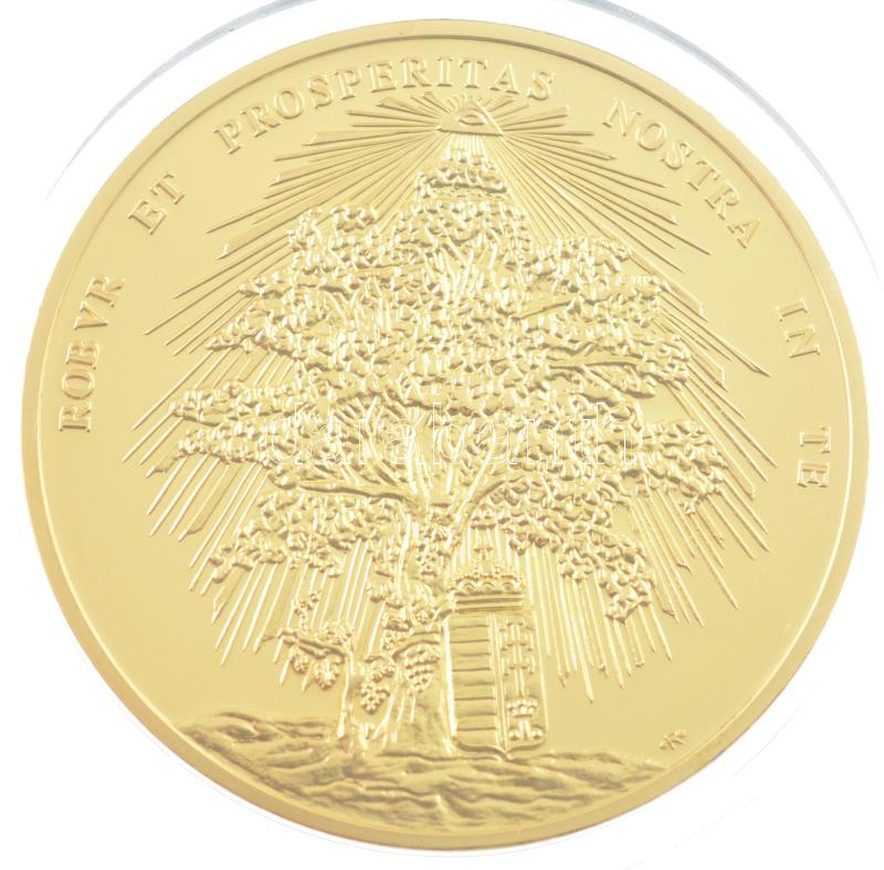 Beschreibung: DN "Magyar Aranyóriások - V. Ferdinánd koronázási érem, 15 Dukát 1830" aranyozott Cu utánveret T:PP