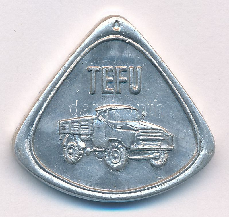 ~1960. "Volán / TEFU (Teherfuvarozás)" Al közlekedési bárca ... https://www.darabanth.com/de/433-Fernauktion/433.0/Numismatik/Notgeld-aus-Papier-und-Metall~2000016/7E1960-Volan-TEFU-Teherfuvarozas-Al-kozlekedesi-barca-T1-2-ph~II2798821