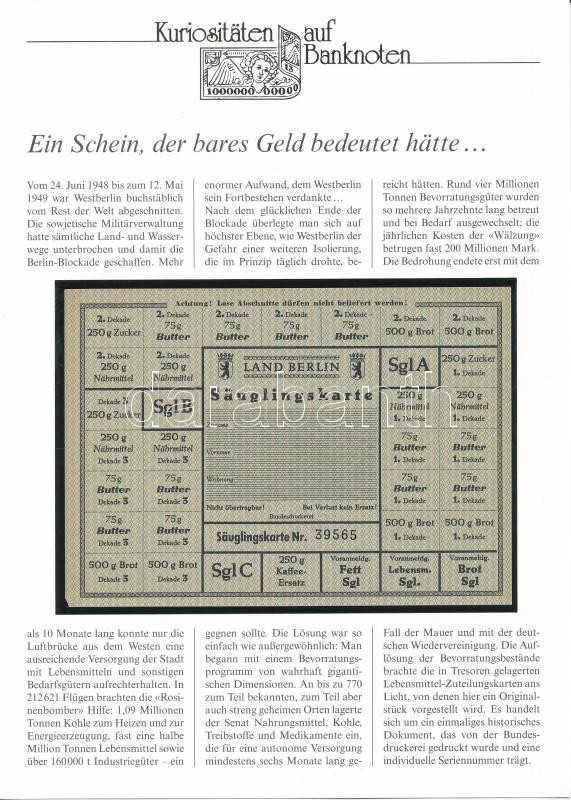 Németország / Berlin 1948-1949. Élelmiszerjegy, német nyelvű leírással... https://www.darabanth.com/de/433-Fernauktion/433.0/Numismatik/Notgeld-aus-Papier-und-Metall~2000016/Nemetorszag-Berlin-1948-1949-Elelmiszerjegy-nemet-nyelvu-leirassal-T1--Germany-Berlin~II2791275
