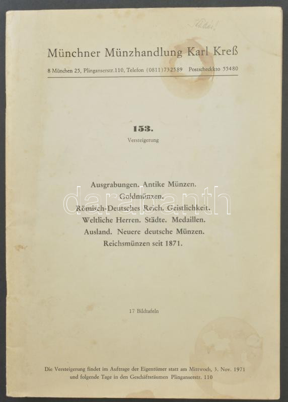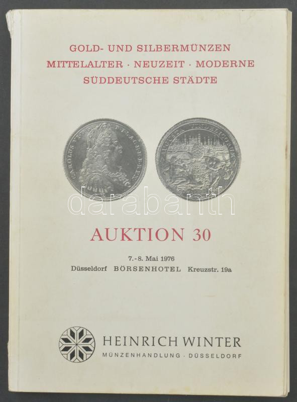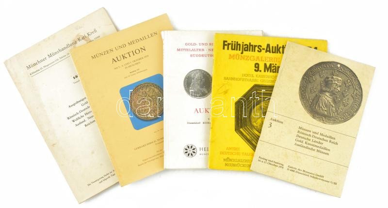 5xklf árverési katalógus tétel, közte Heinrich Winter, Münzgalerie C. Mohr, Gerhard Hirsch, Galerie des Monnaies Düsseldorf, Münchner Münzhandlung Karl Kreß. Használt állapotban.