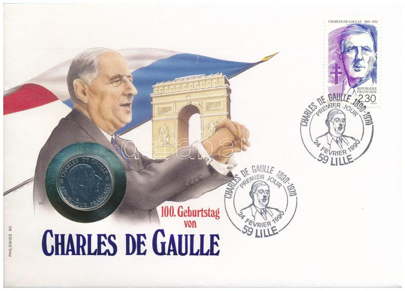Franciaország 1988. 1Fr Ni "Charles de Gaulle" érmés borítékban bélyeggel, bélyegzéssel T:1 France 1988. 1Fr Ni "Charles de Gaulle" in coin envelope with stamps and cancellations C:UNC