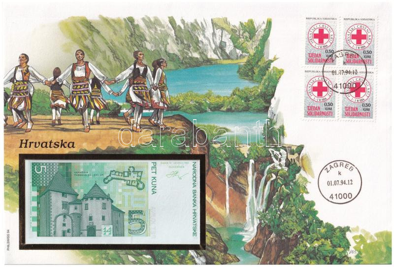 Cro... https://www.darabanth.com/de/433-Fernauktion/433.0/Numismatik/Umschlage-mit-Munzen-und-Banknoten~2000018/Horvatorszag-1993-5K-felbelyegzett-boritekban-belyegzessel-TI--Croatia-1993-5-Kuna-in-en~II2794734