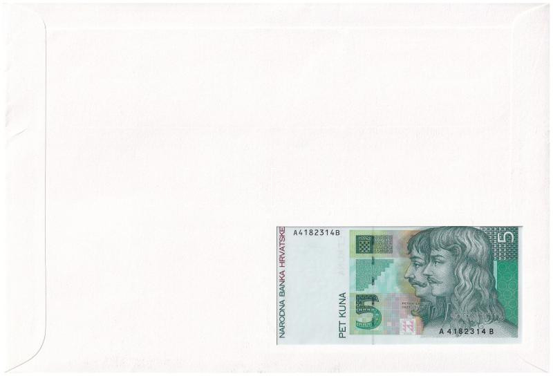 Croatia 1993. 5 Kuna in envelope with stamp and cancellation C:UNC