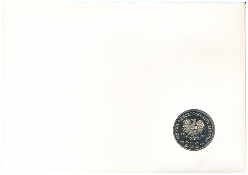 Lengyelország 1987. 200Zl Cu-Ni "1988 Labdarúgó EB" próbaveret érmés borítékban, bélyeggel, bélyegzéssel, német nyelvű leírással T:PP Poland 1987. 200 Zlotych Cu-Ni "Euro 1988" trial strike, in envelope with stamp and cancellation, with german description C:PP Krause KM# Krause Pr553
