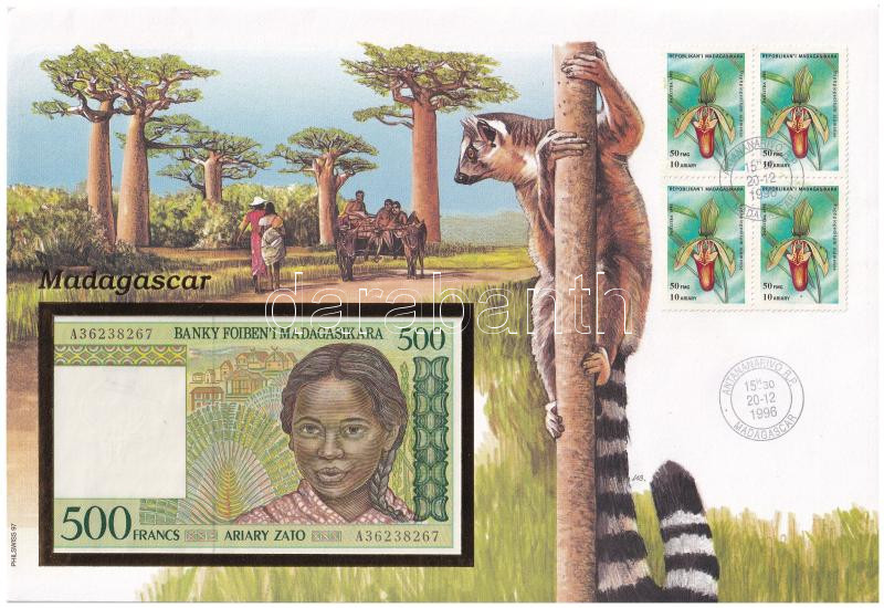 Madagascar 1994. 500 Francs in envelope with stamp and cancellation C:UNC