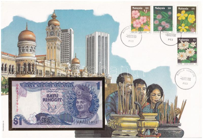 Beschreibung: Malajzia 1981-1983. 1R felbélyegzett borítékban, bélyegzéssel T:I Malaysia 1981-1983. 1 Ringgit in envelope with stamp and cancellation C:UNC