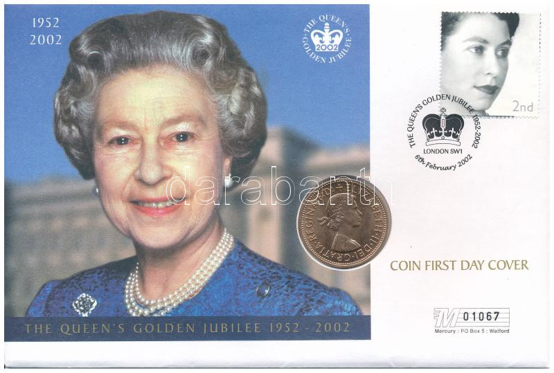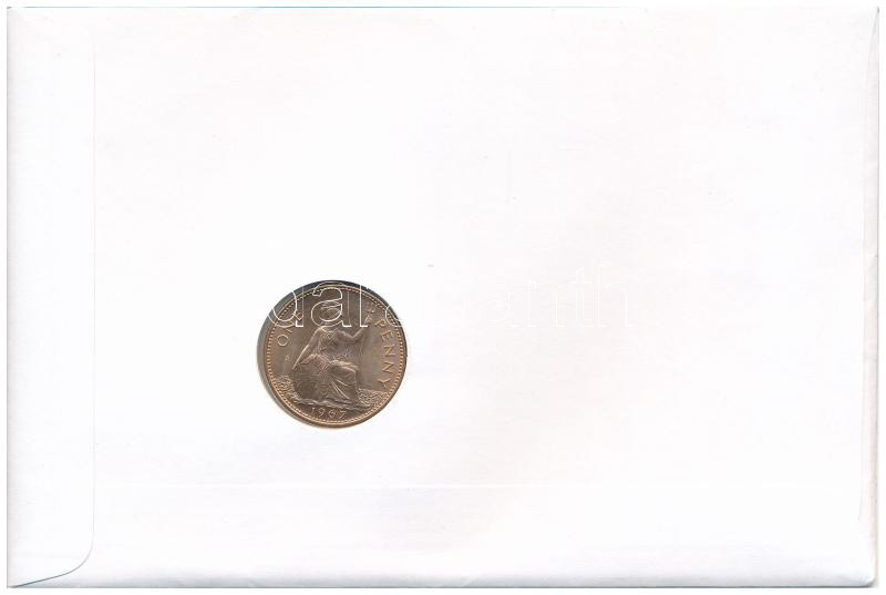 Nagy-Britannia 1967. 1p bronz "II. Erzsébet uralkodásának 50. évfordulója" érmés, "01067" sorszámú, felbélyegzett borítékban T:1,1-