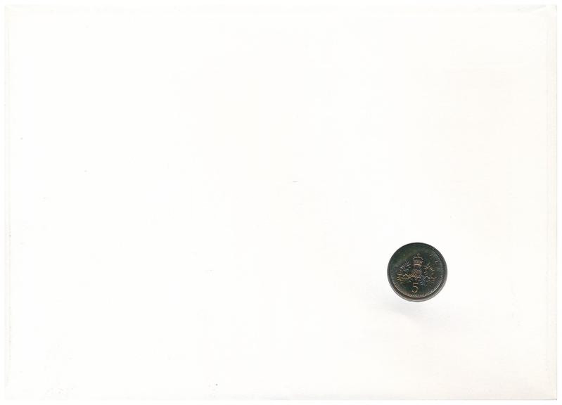 Nagy-Britannia 1990. 5p "Brit Antarktiszi Terület" érmés borítékban, bélyegzéses bélyeggel, német nyelvű leírással T:1 patina Great Britain 1990. 5 Pence in "British Antarctic Territory" coin envelope with stamp and cancellation, with German description C:UNC patina